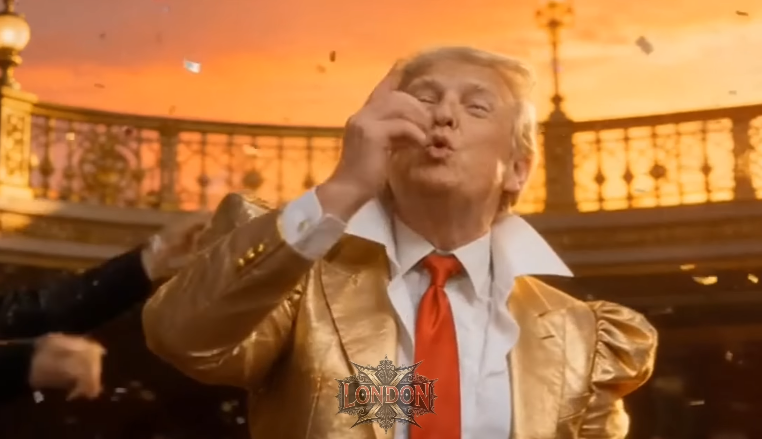 At the center of the video is Donald Trump, portrayed through exaggerated catchphrases, bold claims, and a larger-than-life persona. The lyrics cleverly remix some of his most recognizable statements, from “covfefe” to “you’re fired,” transforming them into rhythmic hooks that are both humorous and oddly catchy.